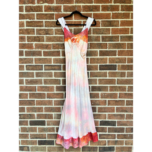 Antique Hand Dyed Slip Dress Pink & Purple Ice Dye Rayon Lace Trim
