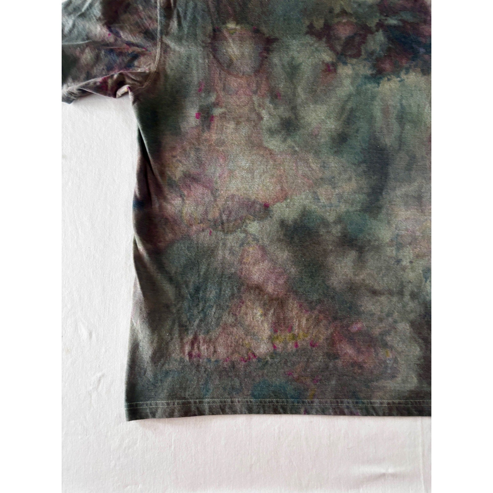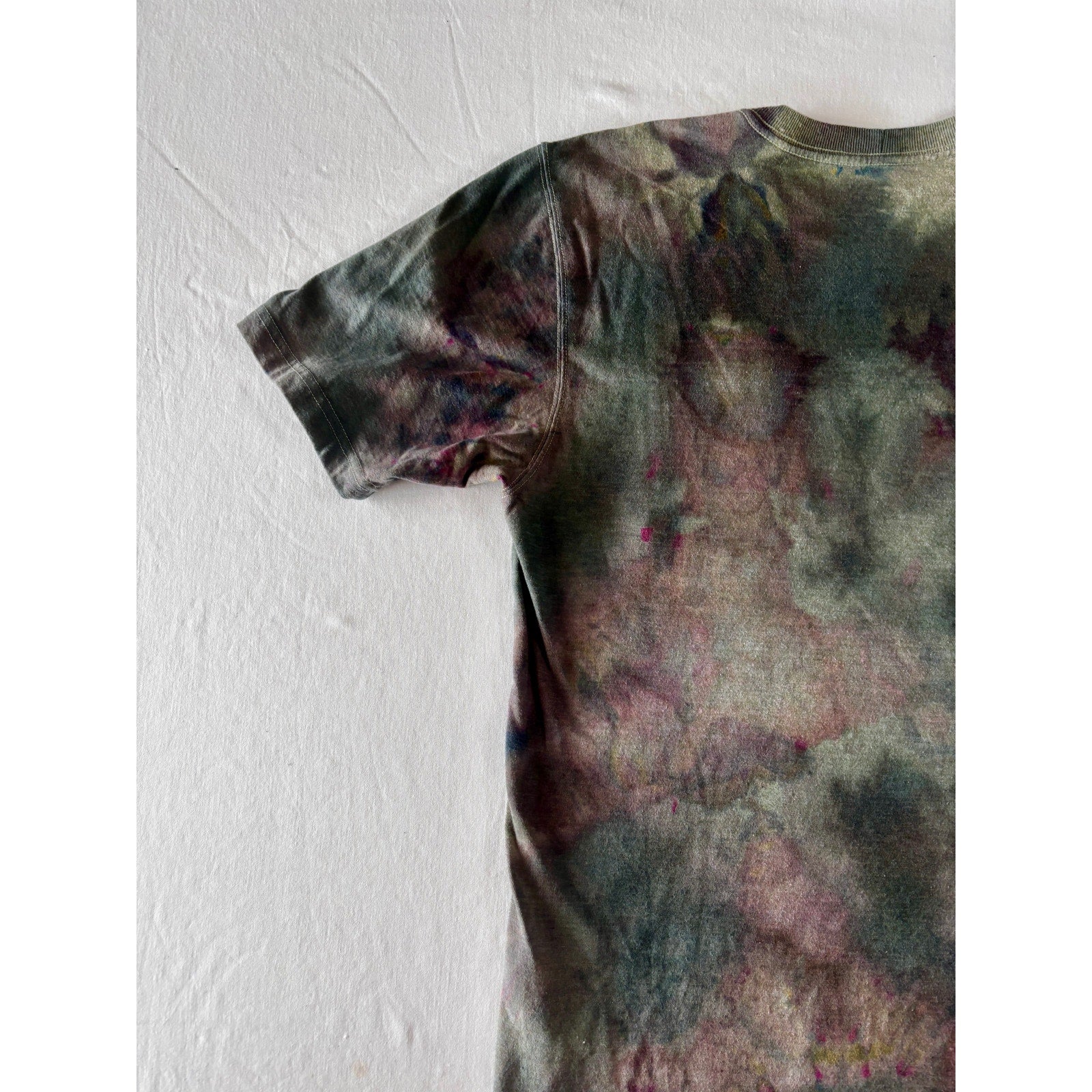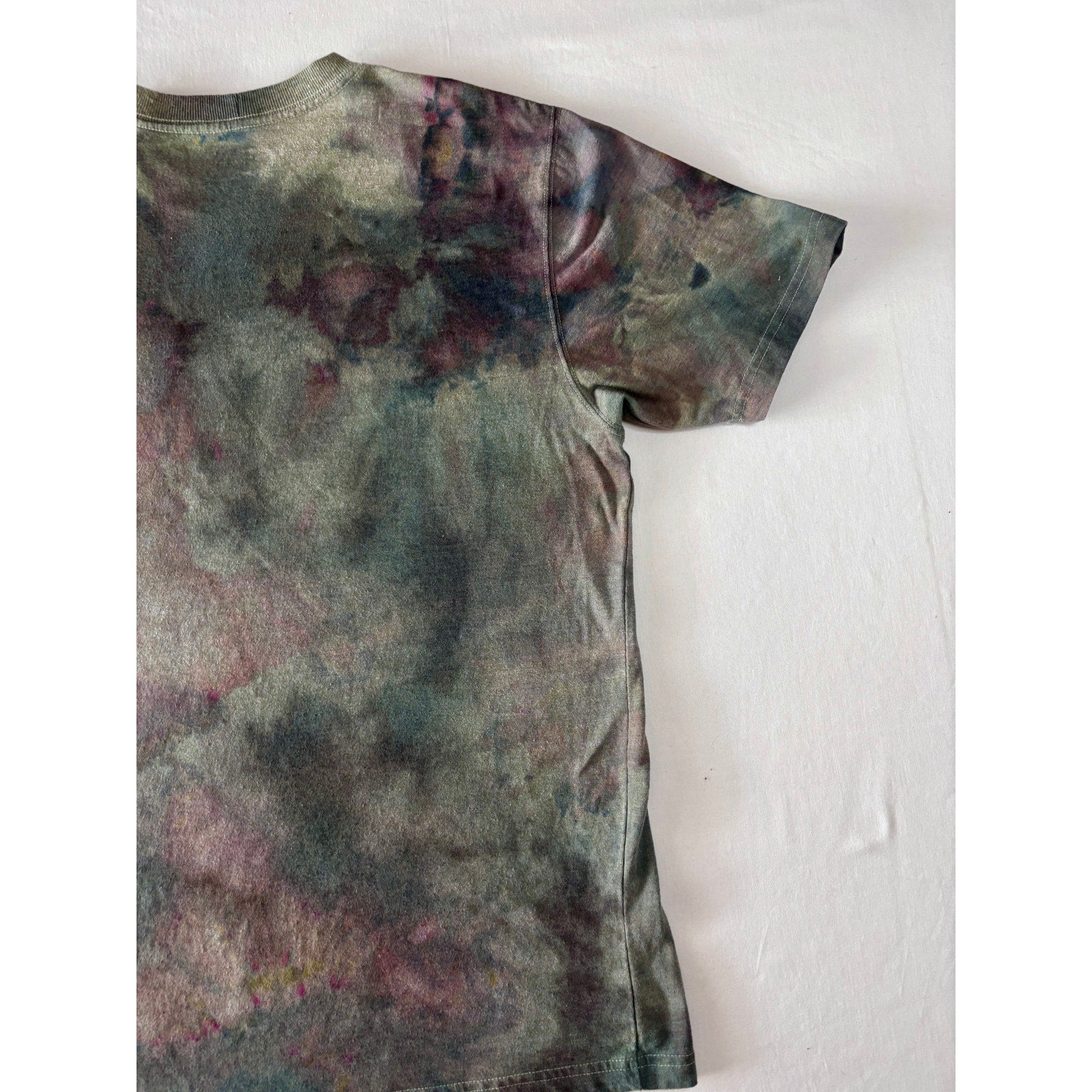 Ice dyed Carhartt t-shirt in purple and gray. Expert dye techniques have given this pre-loved shirt a one-of-a-kind new look.