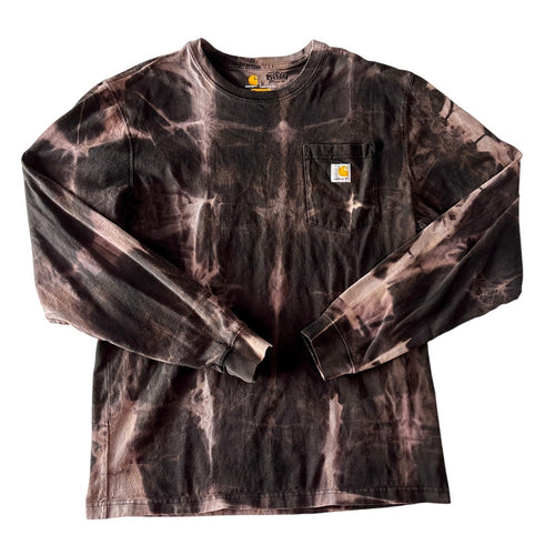 Black & Pink Shibori Bleach Dyed Carhartt T-Shirt Long Sleeve Size Large