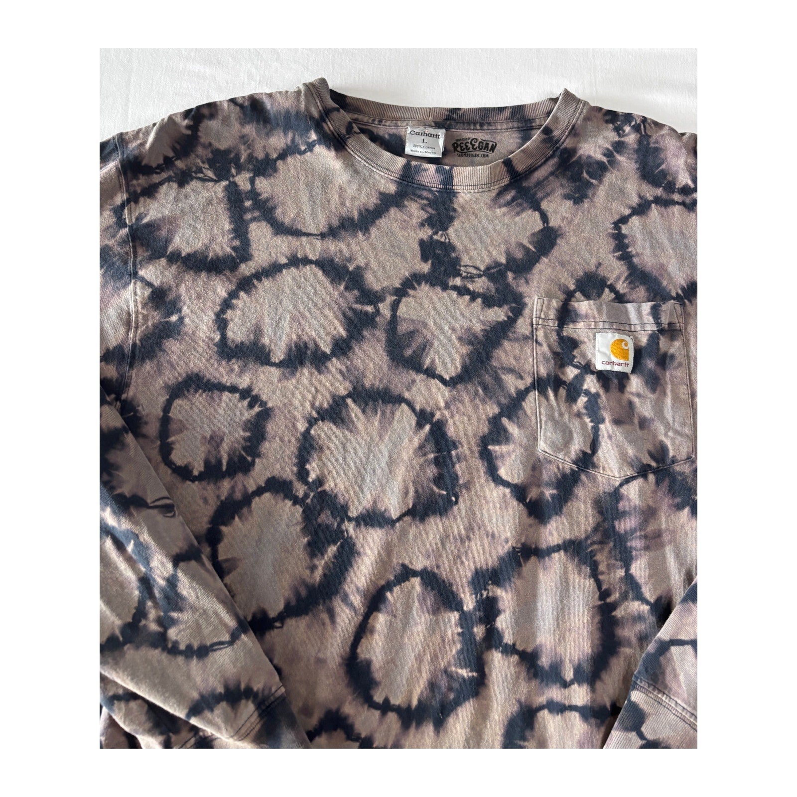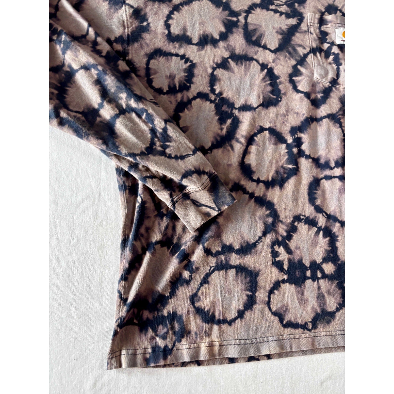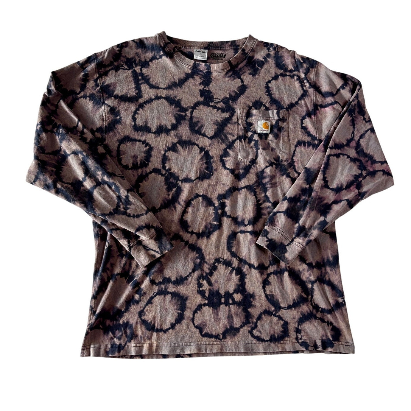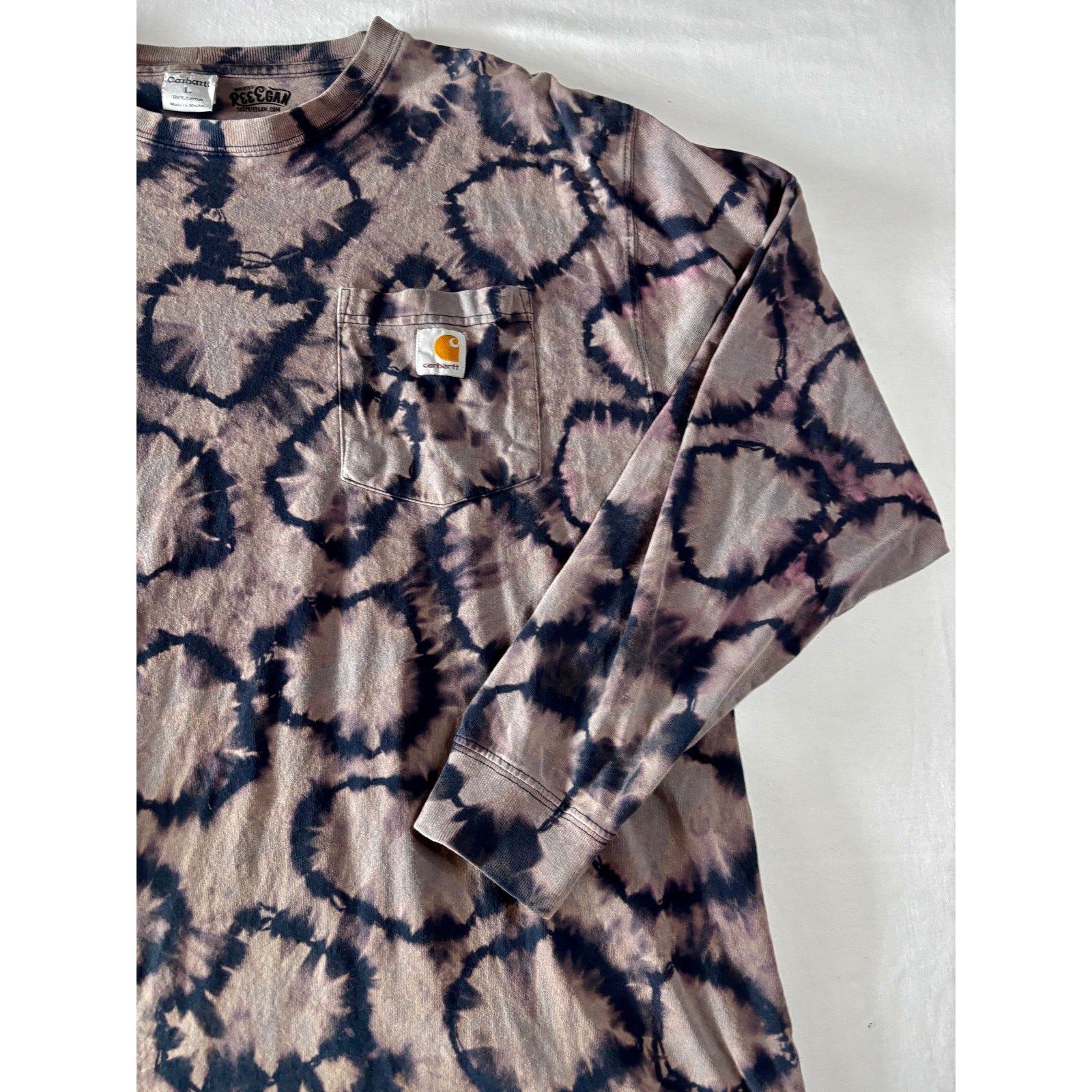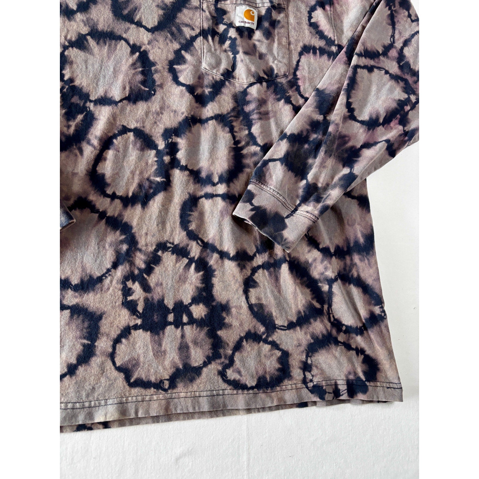Navy & Purple Shibori Bleach Dyed Carhartt T-Shirt Long Sleeve Size Large