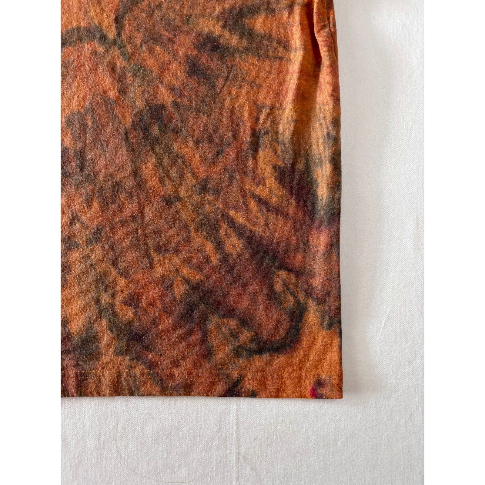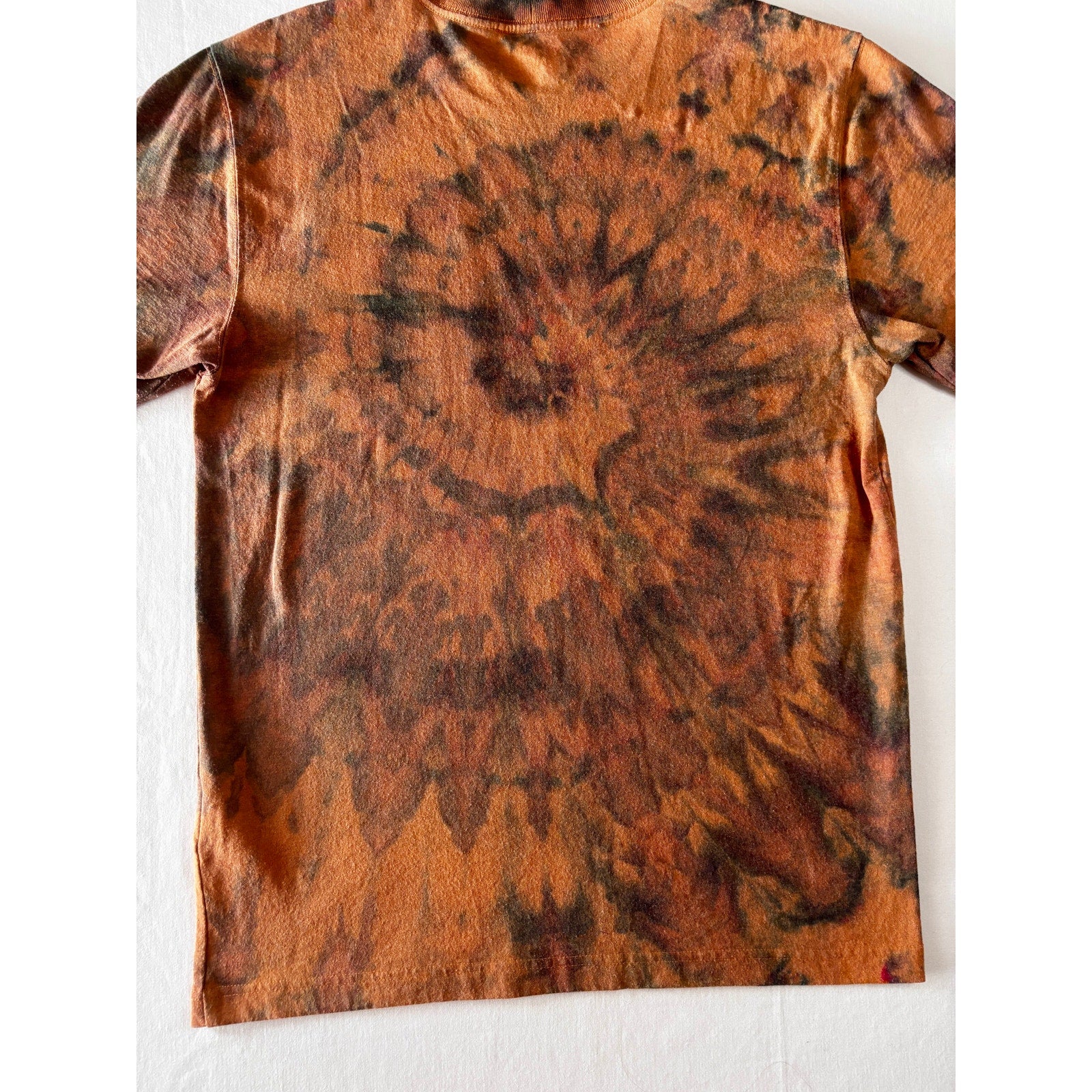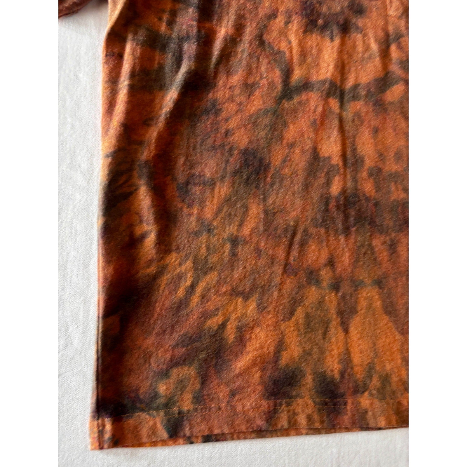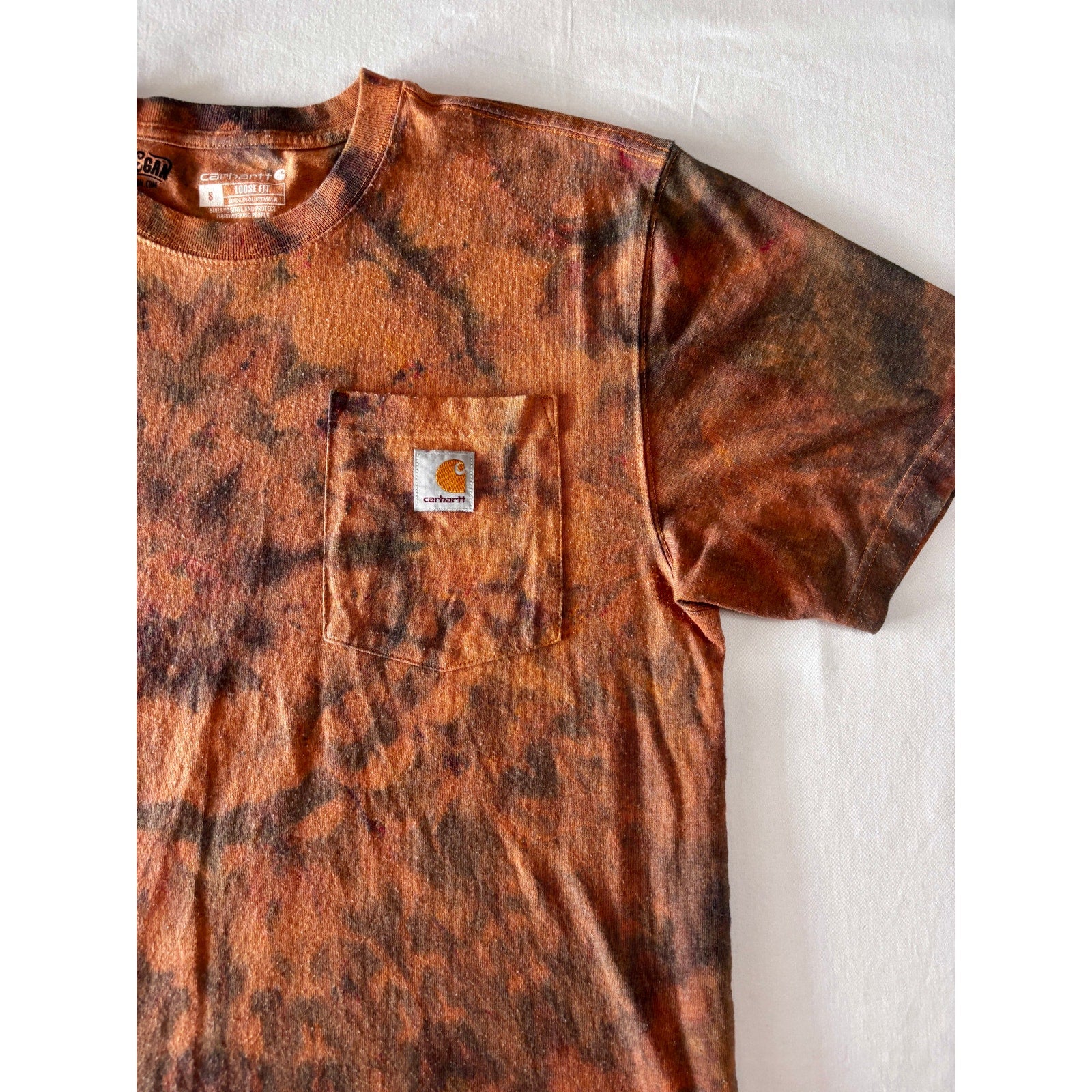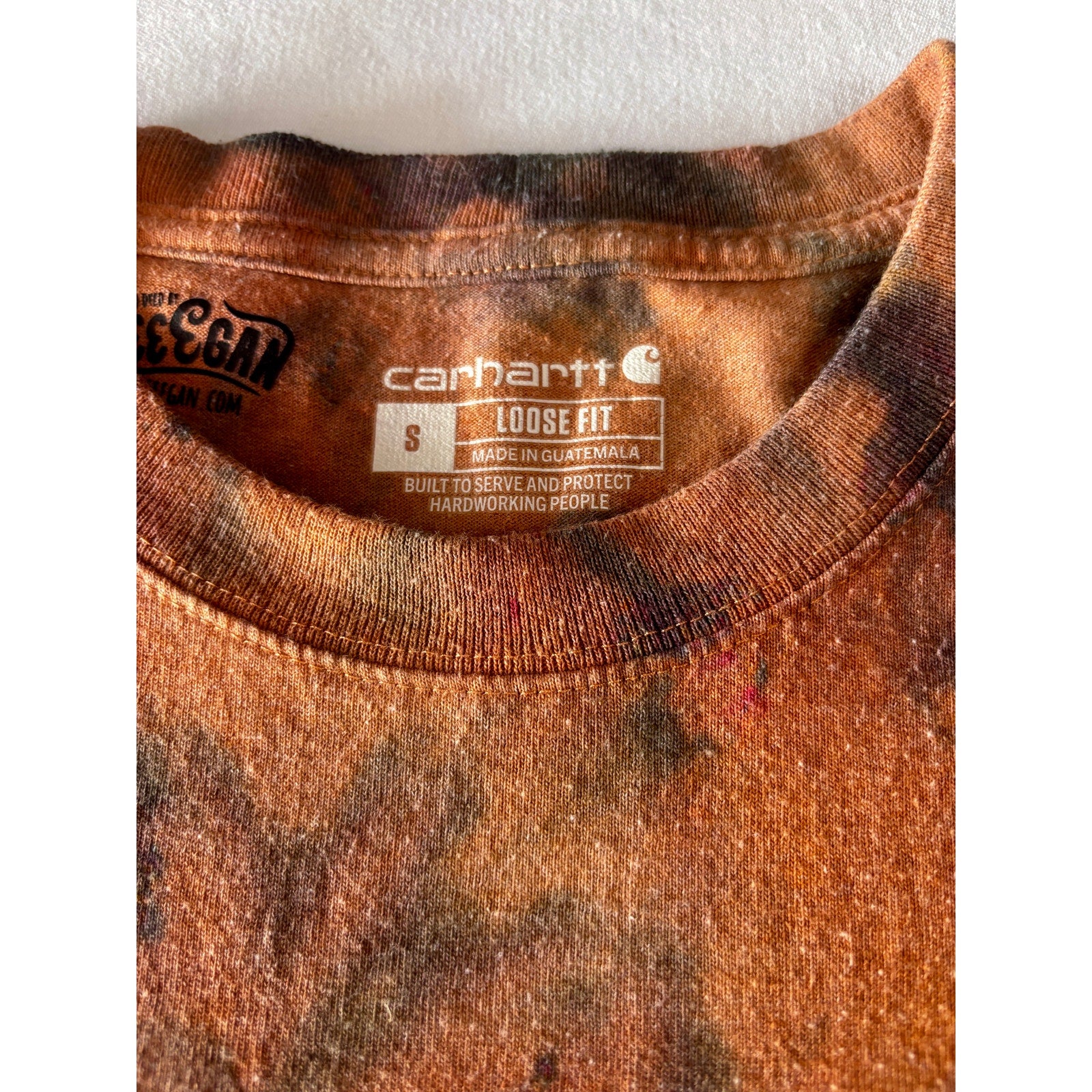 Shibori bleach dyed Carhartt t-shirt in black and gray. Expert dye techniques have given this pre-loved shirt a one-of-a-kind new look.