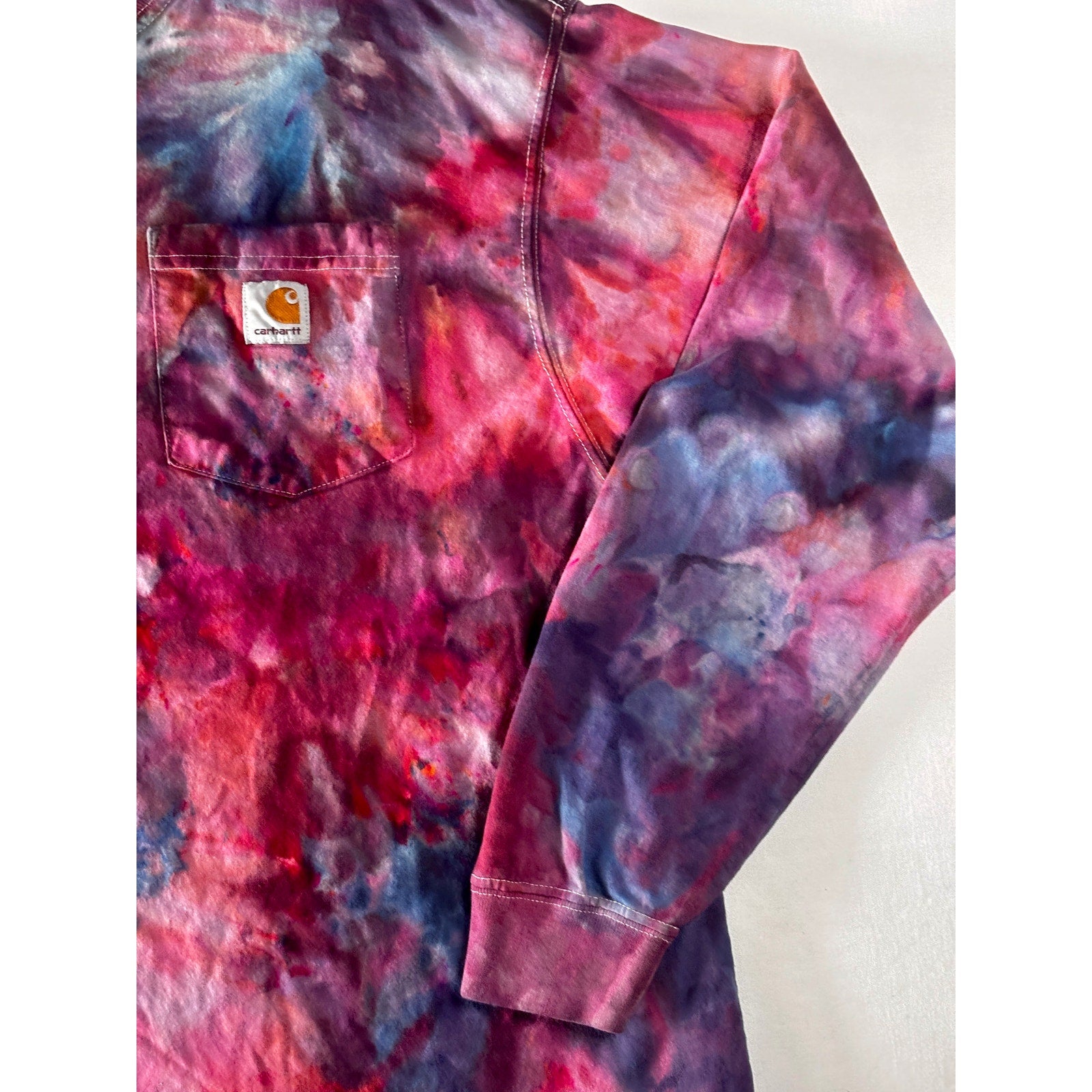 Pink & Purple Ice Dyed Carhartt T-Shirt Long Sleeve Size Large