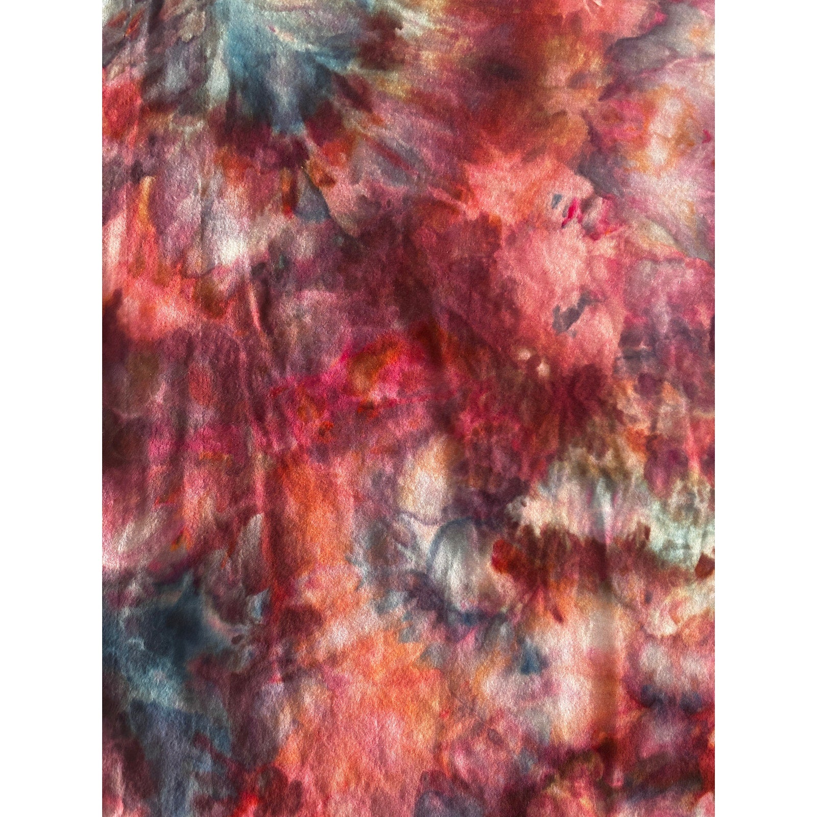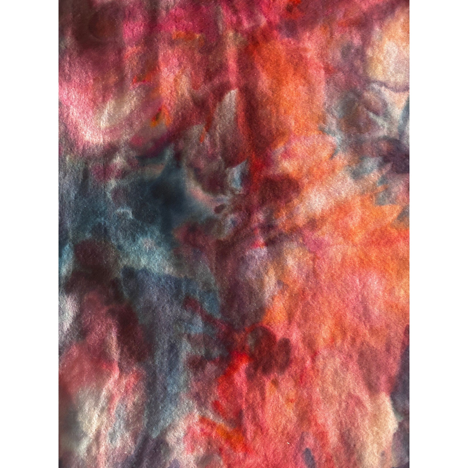 Ice dyed Carhartt t-shirt in pink and purple. Expert dye techniques have given this pre-loved shirt a one-of-a-kind new look.